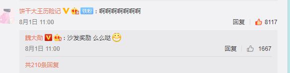 8月1日,魏大勛發(fā)出的一條視頻微博“先說明,是#魏大勛家的魔鬼沙發(fā)#先動的手!”并配上了某綜藝的節(jié)目畫面。微博瞬間火爆,沙發(fā)更成為了互動熱點,粉絲們在評論區(qū)炸開了鍋。沙發(fā)二子就這樣“C位出道”,#魏大勛家的魔鬼沙發(fā)##沙發(fā)二子#等瞬間成為了熱門話題。