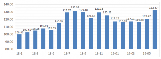 南康家具產(chǎn)業(yè)大力實施“設(shè)計引領(lǐng)、創(chuàng)新驅(qū)動、品牌帶動”戰(zhàn)略,堅持綠色發(fā)展、創(chuàng)新發(fā)展,不斷加快轉(zhuǎn)型升級,高質(zhì)量發(fā)展成效顯著。產(chǎn)業(yè)發(fā)展指數(shù)近兩個月均上漲,且漲幅明顯。其中6月收于132.37點,環(huán)比上漲9.88%,家具企業(yè)處于傳統(tǒng)旺季的良好氛圍下,企業(yè)經(jīng)濟效益反饋良好。