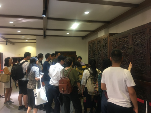 第四站:參觀龍順成明清古典家具博物館,龍順成銷(xiāo)售部經(jīng)理馬鐵松帶領(lǐng)大家在這里參觀了50余件珍貴的硬木家具藏品,展出的藏品歷史悠久、種類(lèi)豐富,制作年代最早可追溯到明清時(shí)期,近距離的感受了硬木家具圓潤(rùn)柔和及精細(xì)生動(dòng)的雕工。