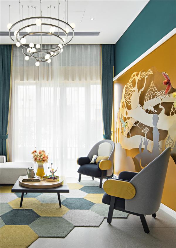 幾何拼接的格調,色塊組合的紋路肌理,營造出極具童年意趣的生活氛圍指南,孩童與大人均被空間的唯美格調溫暖、治愈,抵達美好生活的深度樂趣。