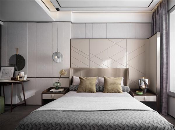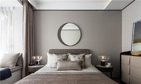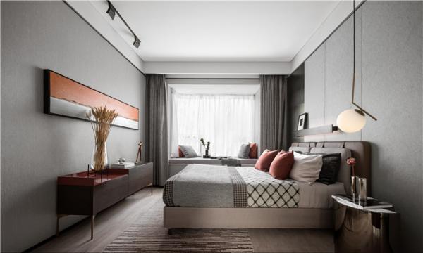 休憩空間延續(xù)主空間穿插不同材質(zhì)的混搭,精致的墻面收口、序列感的灰色墻布硬包與米色編織元素紋理的捫皮造型,層層遞進的搭配與細節(jié)把控,讓居住者迅速融入到空間情感的線索中,呈現(xiàn)出剝絲抽繭抽離極繁生活后的安穩(wěn)感。