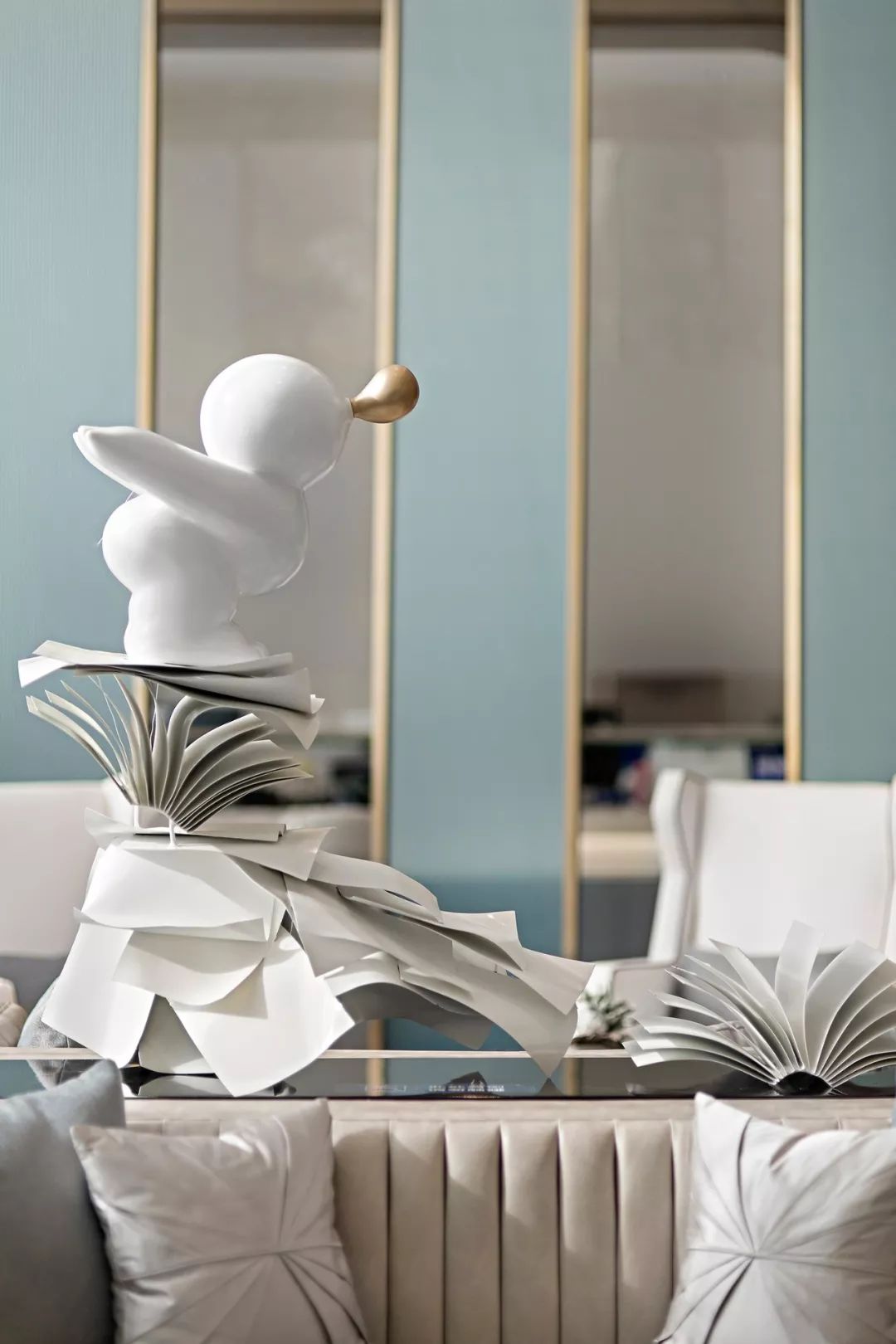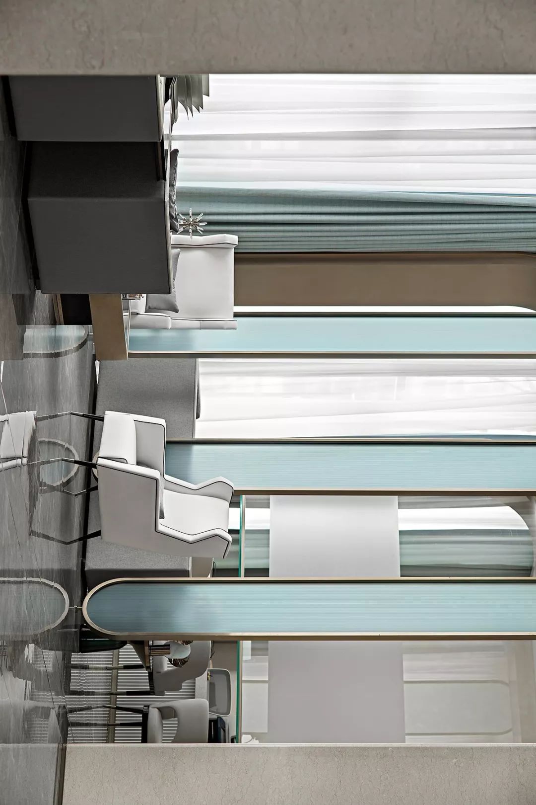 大塊面低飽和度的藍(lán)色在簡白的整體調(diào)性中,一躍成為空間的核心體塊,靜謐澄凈的藍(lán),卻擁有著強(qiáng)大的蝶變力量和心靈治愈功能,使空間更具時(shí)尚感及層次感,亦不失高雅的氣質(zhì)。