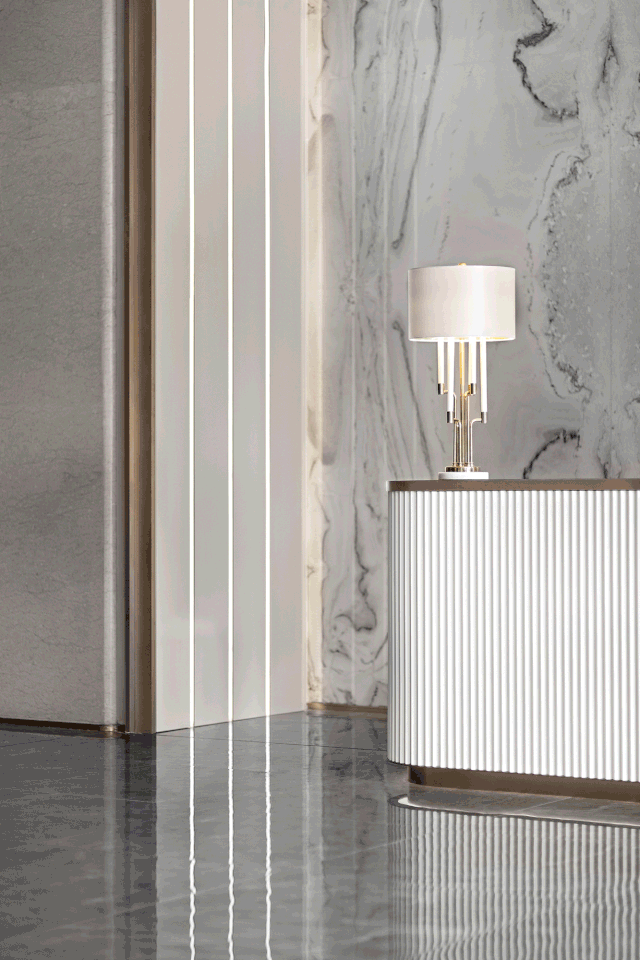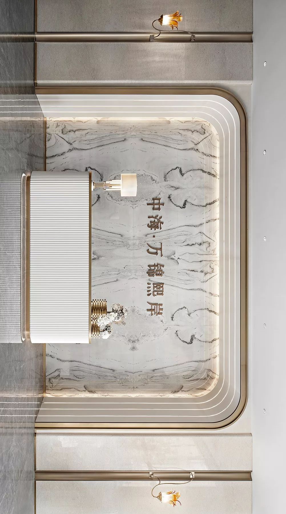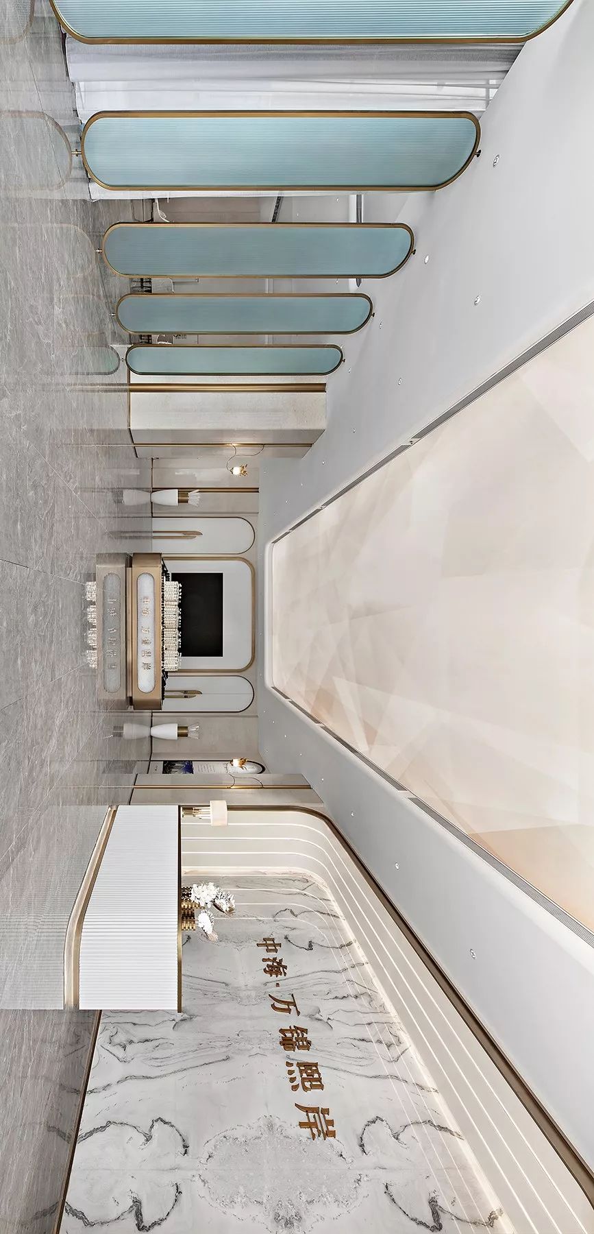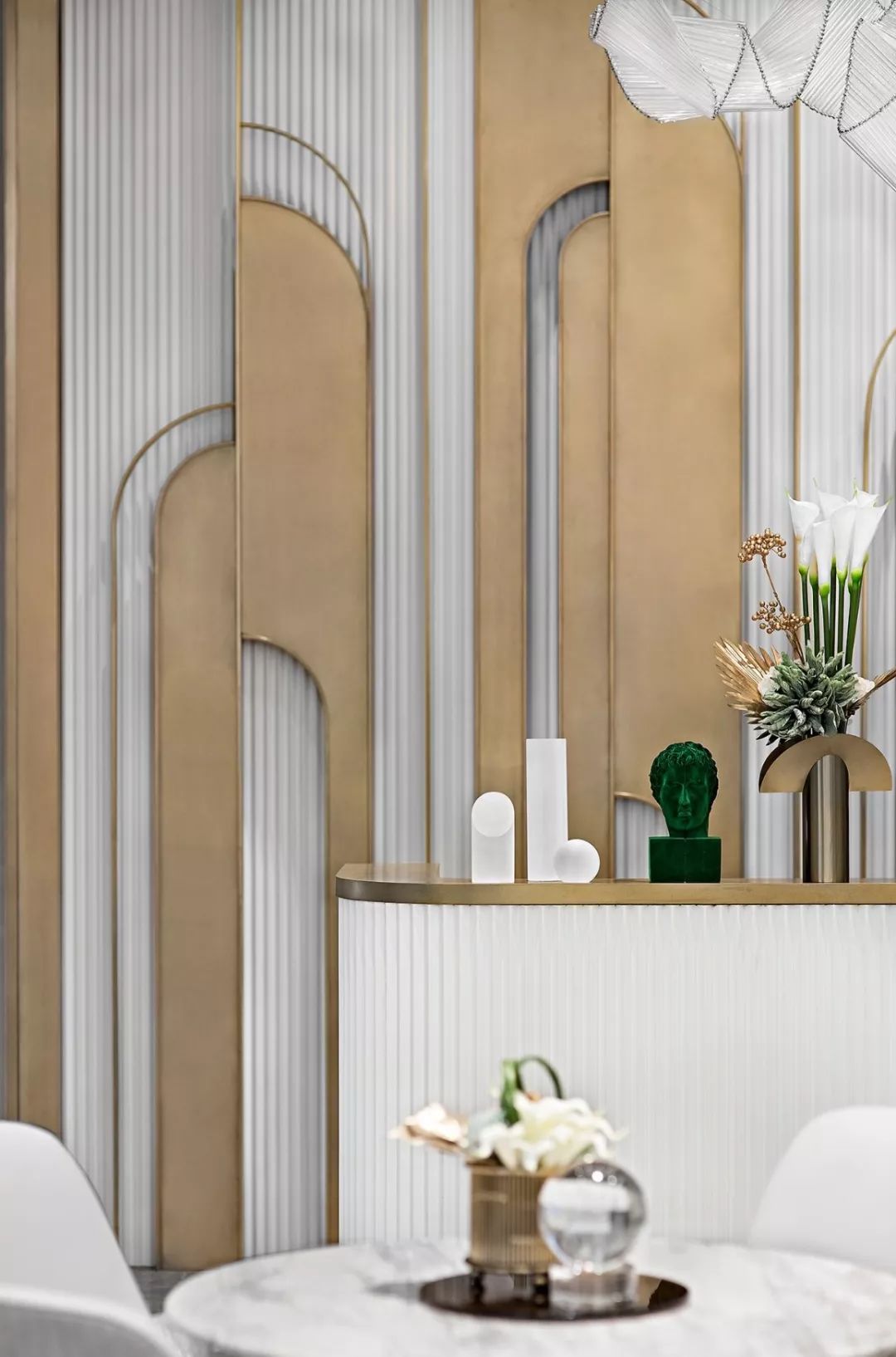 白凈的折線與拱形的金屬形成兩種極致的對白與呼應(yīng),設(shè)計(jì)師以無窮的想象把無意識的行動(dòng)轉(zhuǎn)化為可見之物,將物體的輪廓用藝術(shù)語言再度改編,理性與感性的交疊與平行中,用設(shè)計(jì)為售樓中心全新賦能。