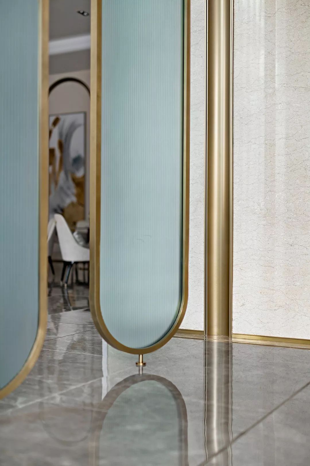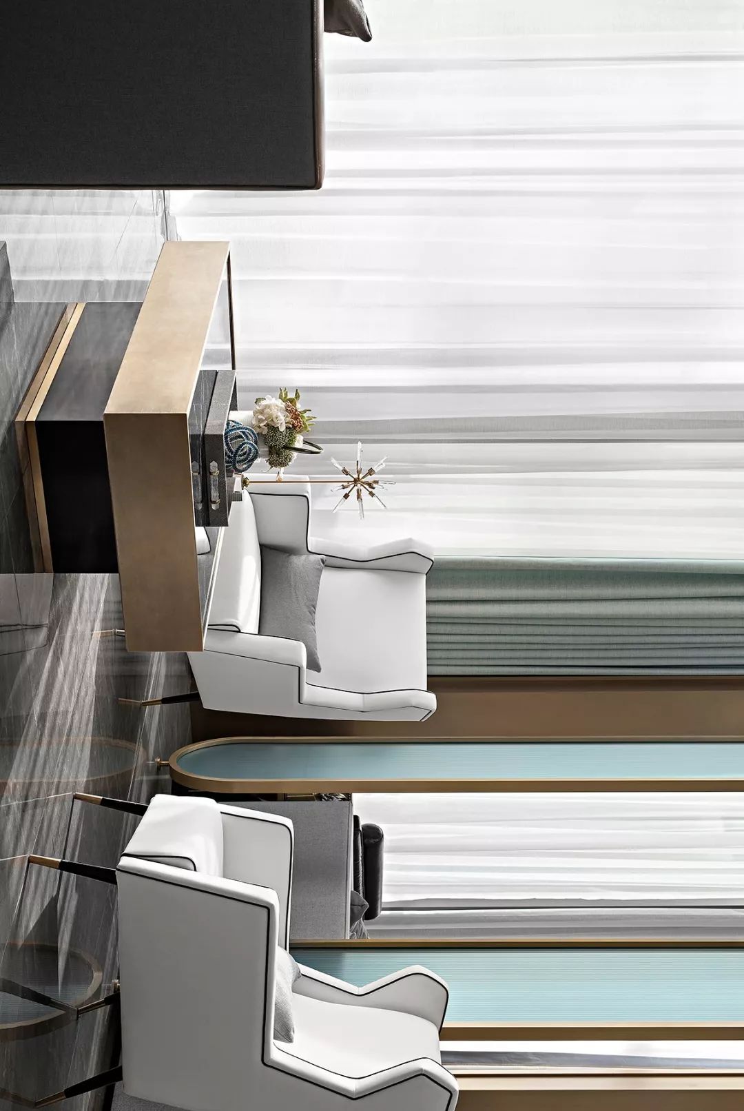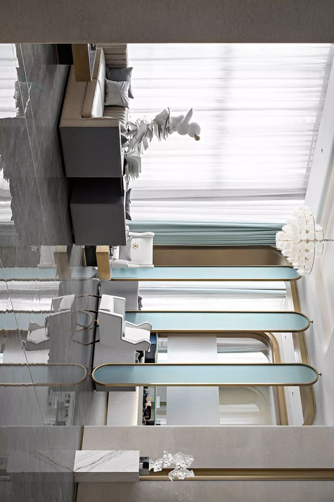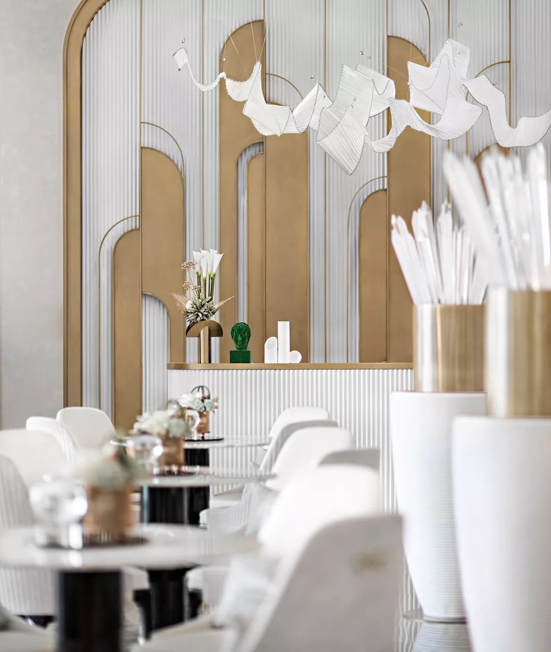 邊緣鑲嵌香檳色金屬條,提升了細(xì)節(jié)的精致感,輕薄飄逸的“云朵”意形墻面裝飾,予人無限的想象,全維度促進(jìn)成都人對生活的熱愛和向往。
