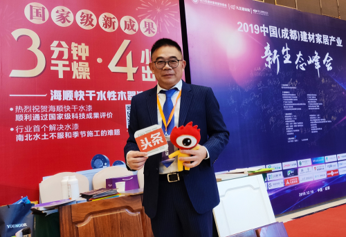 12月10日,2019中國(guó)(成都)建材家居產(chǎn)業(yè)新生態(tài)峰會(huì),廣東海順新材料科技有限公司(以下簡(jiǎn)稱(chēng)“海順科技”)快干型水性木器漆涂料體系科技成果授牌儀式隆重舉行。中國(guó)高科技產(chǎn)業(yè)化研究會(huì)、中國(guó)建筑材料流通協(xié)會(huì)、全國(guó)工商聯(lián)家具裝飾業(yè)商會(huì)、四川省建材家具裝飾商會(huì)、廣東省門(mén)業(yè)協(xié)會(huì)、廣州市定制家居行業(yè)協(xié)會(huì)、九正科技集團(tuán)、九正建材網(wǎng)、掌上明珠家居、尚品宅配、千川木門(mén)、海爾家居、皇朝家私、龍馬木業(yè)等多家行業(yè)協(xié)會(huì)以及多家行業(yè)媒體共同見(jiàn)證了這一難忘的時(shí)刻。