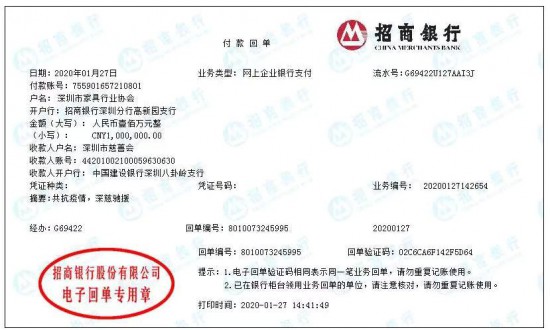 1月27日,深圳市家具行業(yè)協(xié)會(huì)已向武漢疫區(qū)捐款100萬(wàn)人民幣!