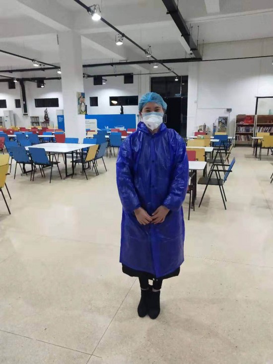 龍南家具教育學(xué)院身著防護(hù)服的食堂員工