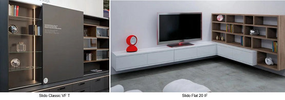 還可以搭配海福樂Slido Flat 20 IF新款平移推拉門五金。作為市場上第一款具有特殊門扇運行動作的平移門五金系統(tǒng),它與其他推拉門五金系統(tǒng)不同的地方是,打開時門扇向柜體內(nèi)部運行,兩扇門關(guān)閉后處于同一平面且完全平齊于柜體,外觀整齊并便于清潔。