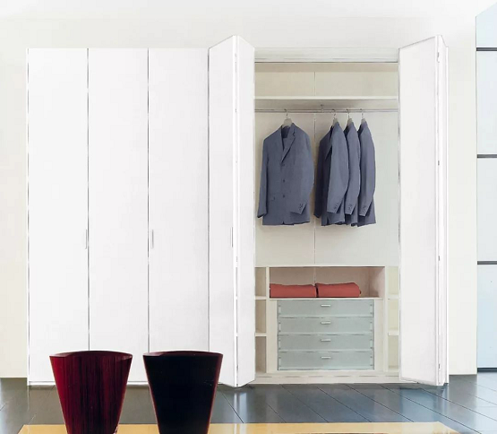 門扇通過旋轉(zhuǎn)或折疊后旋轉(zhuǎn),最終隱藏于柜體中,柜體可以打開至全開狀態(tài),柜內(nèi)一覽無余。不使用時只需將折疊門一關(guān),整個廚房都被隱藏,還你一個整潔明亮的空間。此款推拉門五金系統(tǒng)同樣可以應(yīng)用于臥室,打造出一個可以隨時隱身的衣帽間或者小書房。