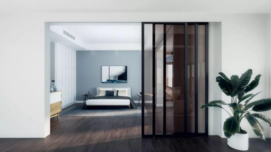 陽臺作為居室采光的主要來源,具有連接室外的功能。想要空間開闊、采光充足,又想要空間有層次感,可以選擇海福樂FG-80 3T三聯(lián)動推拉門五金系統(tǒng),三扇門扇可以完全重疊在一起,最大化開啟空間,提升通透感同時又有效對空間進(jìn)行劃分。同時三扇門扇同步同向的開啟和閉合效果,使推拉輕便自如,安全靜音,打造舒適的生活體驗。