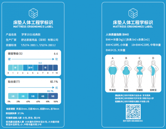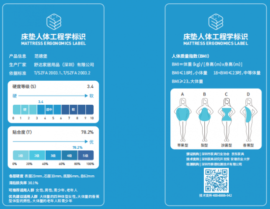 舒達(dá)產(chǎn)品床墊人體工程學(xué)標(biāo)識(shí)
