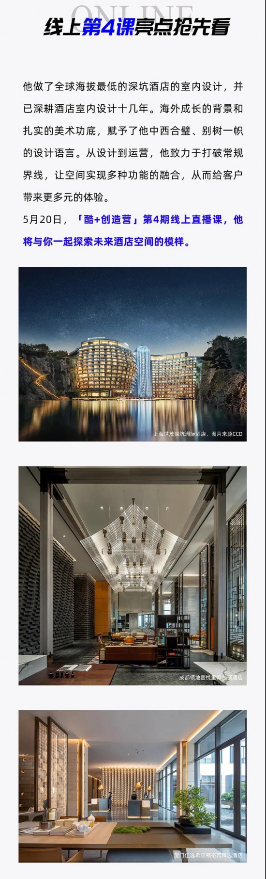 核心提示:5月20日,「酷+創(chuàng)造營」第4期線上直播課,他將與你一起探索未來酒店空間的模樣。