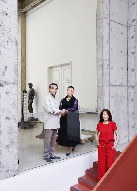 (隋建國(guó)夫婦與陳暄與隋建國(guó)美術(shù)館合影)