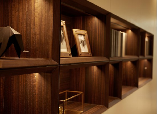 研發(fā)設(shè)計師將成品家具里眾多工藝元素提現(xiàn)到定制產(chǎn)品中,天然木皮貼面技術(shù)、意大利SALICE天地鉸、斜面拼花工藝…讓定制柜體有不同的個性。加厚板技術(shù)的應(yīng)用,讓木板具有了差異性、唯一性,能夠傳達(dá)設(shè)計師的意圖,產(chǎn)品呈現(xiàn)出不同的美感。