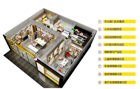 根據(jù)初裝、換裝、翻新和居家四大主流需求,以獨立店、店中店、獨立展區(qū)多種方式融入到家裝公司、家居大店、社區(qū)店、樓盤獨立店多種模式靈活適配。
