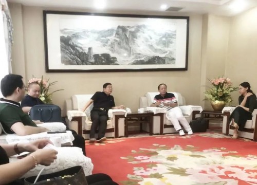 ▲蘇州家具展創(chuàng)辦人趙藝學(xué)向贛州市委常委、南康區(qū)委徐兵書記匯報(bào)蘇州展12年的發(fā)展歷程及本屆展會(huì)籌備情況