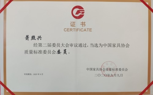 鴻發(fā)家具董事長(zhǎng)蕭照興當(dāng)選中國(guó)家具協(xié)會(huì)質(zhì)量標(biāo)準(zhǔn)委員會(huì)委員