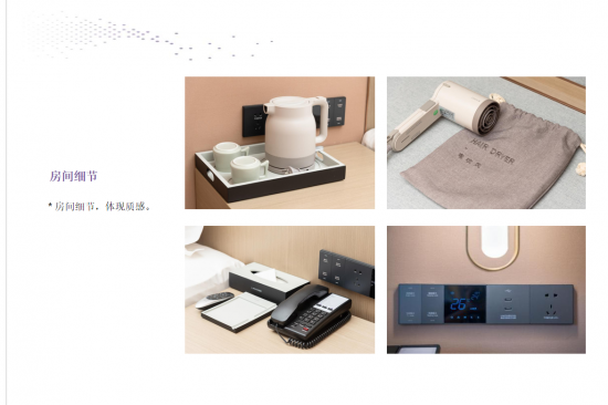 · 房間配備有全新的智能客控、慕思床墊、藍(lán)牙音箱、定制洗護(hù)等設(shè)施