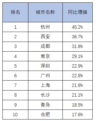 (2020年二手房成交量增長(zhǎng)最快的十大城市。數(shù)據(jù)來(lái)源:貝殼研究院)