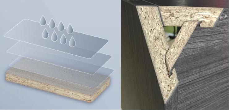 健康原木定向板符合《中華人民共和林業(yè)行業(yè)標準》,達到OSB/3防潮標準,是一款適用于潮濕狀態(tài)下的承載板材。目前定制家居品牌使用的定向結(jié)構(gòu)板大多為B2類,顧家全屋定制從“芯”出發(fā),以卓越厚筑產(chǎn)品內(nèi)功。防潮細節(jié)同樣體現(xiàn)在膠水上,健康原木定向板使用不含甲醛不溶于水的聚氨酯生態(tài)粘合劑,即使水煮30分鐘依然可以實力展現(xiàn)超低的吸水厚度膨脹率,生產(chǎn)成本遠高于市面上普通板材所使用的脲醛樹脂膠。