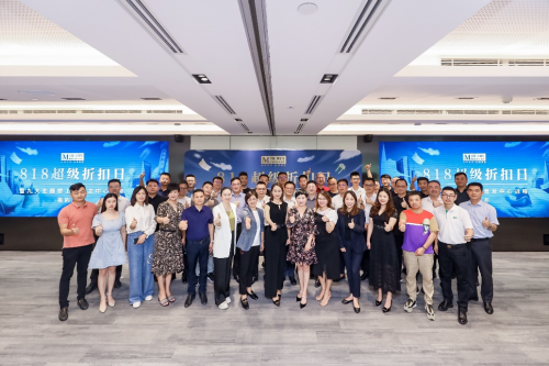 圖丨紅星美凱龍家居集團(tuán)執(zhí)行總裁兼大營運(yùn)中心總經(jīng)理朱家桂(左6)、紅星美凱龍家居集團(tuán)助理總裁兼品牌部總經(jīng)理宋丹(左5)、紅星美凱龍家居集團(tuán)IMP智慧營銷平臺總裁陳運(yùn)(右5)、紅星美凱龍家居集團(tuán)IMP聯(lián)席總裁企劃管理中心營銷副總經(jīng)理趙辰睿(右4)等集團(tuán)高管助攻上海“818超級折扣日”