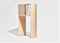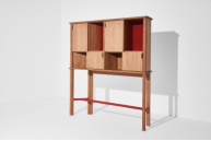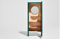 在廣泛使用視頻會議和社交平臺的生活中,F(xiàn)umagalli Romario觀察了人們精心布置的背景空間,這讓她開始思考:“物品作為我們自身延伸的重要性:一方面,產(chǎn)生了許多界限;另一方面,界限消失,私人生活和公眾活動可融為一體。”她把背景空間比作文藝復興時期繪畫中的小畫室,也比作擺滿古董的陳列柜。受此啟發(fā),她創(chuàng)造了一個實物背景,一個能夠通過展示或隱藏物品來表現(xiàn)自我的柜子。為了增加它的神秘感,她對分割櫥柜的垂直平面進行了調(diào)整,并配合梯度涂飾,這樣有更深度的錯覺。對于自己選擇的美國櫻桃木,她說:“我想要一種會自己說話的木材。此外,我喜歡它溫暖的顏色,這是一種如果暴露在光線下會迅速變色的木材。如今,能夠有一件提醒我們它們是來自大自然,并且會隨著時間推移發(fā)生變化的物件是很重要的。”