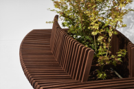 Mazibuko作品的靈感來自于Isicolo,一款代表多個非洲部落文化的發(fā)型,以及Indlamu,一種祖魯部落在慶祝儀式上跳的舞蹈。他將這些視覺參照物與互動主題、人類行為以及在人們生活中的設計角色結(jié)合起來。他說:“與他人打交道是人類的內(nèi)在特質(zhì)。”他將此作為自己設計的理由,為公共空間設計了一個模塊化、分層的座椅。他采用一種實用的方法,強調(diào)以人體工程學和功能性來創(chuàng)造他的長凳,由熱處理的美國紅橡木制成的互相連接的條形組成——木材經(jīng)過高溫烘烤,使其適合戶外使用。