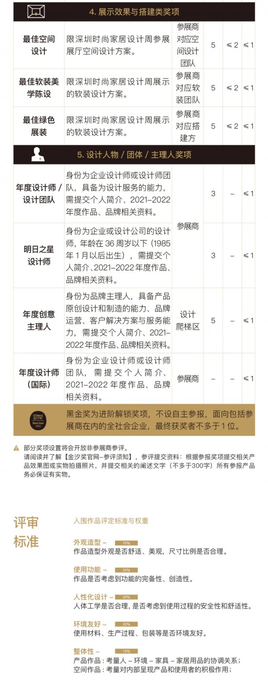 為更好地順應時代發(fā)展趨勢,發(fā)掘出更具普世價值的設(shè)計作品,2022年金汐獎決定對“評審、獎項和傳播推廣”進行全面革新,由內(nèi)而破。它將強化對作品價值觀(包括設(shè)計理念、人性化關(guān)懷、設(shè)計價值觀、可持續(xù)理念、社會責任感等深層次要素)的洞察、審視和反思,以推舉出真正代表中國未來設(shè)計水平、有獨立思考、實踐能力、并對行業(yè)作出示范作用和貢獻的優(yōu)秀作品、設(shè)計師。