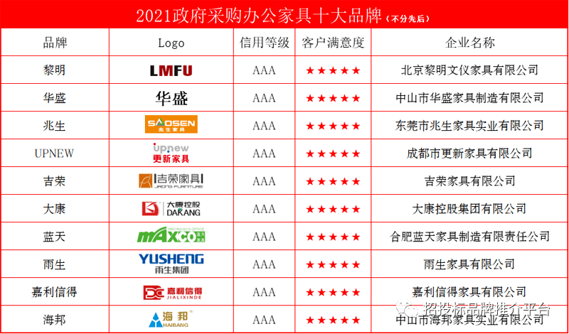 2021政府采購辦公家具十大品牌
