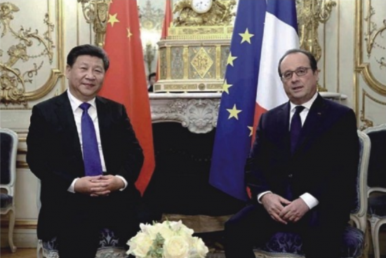 圖5、2014年3月26日,在習(xí)近平主席和法國(guó)奧朗德總統(tǒng)的親自見(jiàn)證下,中法兩國(guó)政府代表簽署《關(guān)于在武漢市建設(shè)中法武漢生態(tài)示范城意向書》