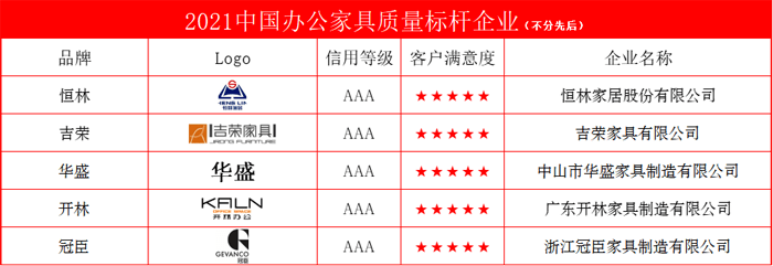 招投標供應鏈品牌推介平臺作為國內招投標領域領先的品牌推介服務平臺,一直致力于招投標全行業(yè)品牌發(fā)展,為進一步推動家具高質量發(fā)展,宣傳質量標桿企業(yè)良好品牌形象,舉辦了以“品質贏得信賴、實力鑄就品牌”為主題的“2021中國辦公及商用家具評價推介”活動,此次活動受到業(yè)內及社會各界人士的廣泛關注和熱情參與,宣傳展示家具知名品牌企業(yè)510余家,網絡公眾滿意度市場調查投票共達829.3262萬余票。各品牌數據由機構推薦、企業(yè)自薦、大數據采集構成,并由來自質檢、環(huán)保、認證、行業(yè)協會等專家進行了綜合評審,在全國眾多家具品牌中甄選出誠信、優(yōu)質、綠色、環(huán)保、科技智能程度高、服務能力強、綜合實力突出的“家具質量標桿企業(yè)”,加以大力宣傳,展示家具質量標桿企業(yè)良好形象,發(fā)揮榜樣帶頭作用,為廣大需求采購單位、經銷商、代理商等各方提供參考。具體如下: