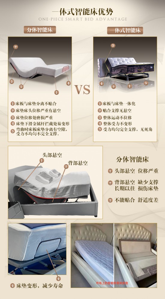 智能床分為一體式智能床和分體式智能床,如下圖可見,左邊為分體式智能床,右邊為一體式智能床。