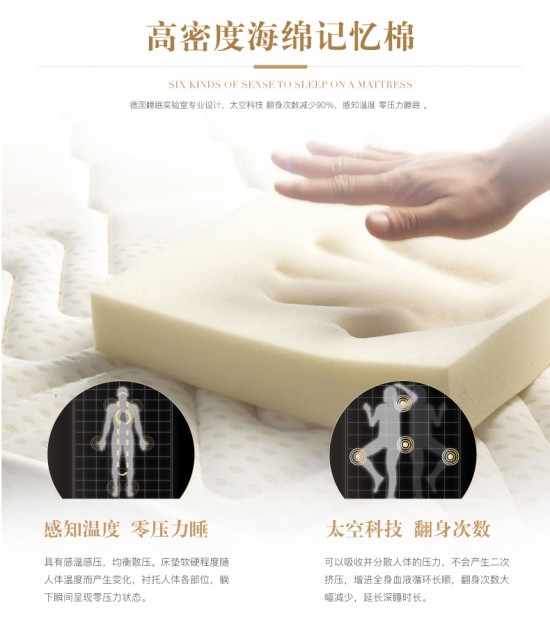 路福S301采用太空記憶棉,可通過特有的感溫記憶粒子感知人體體溫,提供舒適的支撐硬度;同時(shí)能夠感知,記憶人體曲線,依照人體起伏完美塑型,服帖保護(hù)頸、腰、臀、腿部的自然彎曲。