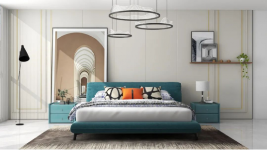 灰色中加一點(diǎn)藍(lán)調(diào),CBD家居·白金 | BS007軟床,悅現(xiàn)復(fù)古感,床身線條簡練流暢,布藝的柔韌性加持,多一份飄逸舒緩的氛圍感。