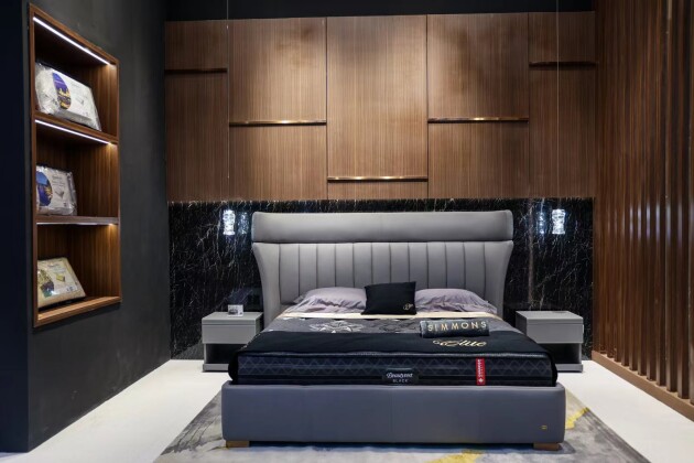 Simmons席夢(mèng)思首發(fā)展出的Elite奢華系列配套床架維吉爾及愛羅伊,定位高端客群,一經(jīng)推出就吸引了眾多目光,床表層均采用了優(yōu)質(zhì)頭層牛皮,并經(jīng)由磨革機(jī)讓其表面產(chǎn)生絨感,整體的磨砂牛皮面料華貴內(nèi)斂,床架線條利落,造型雅致時(shí)尚,讓臥室空間耳目一新。