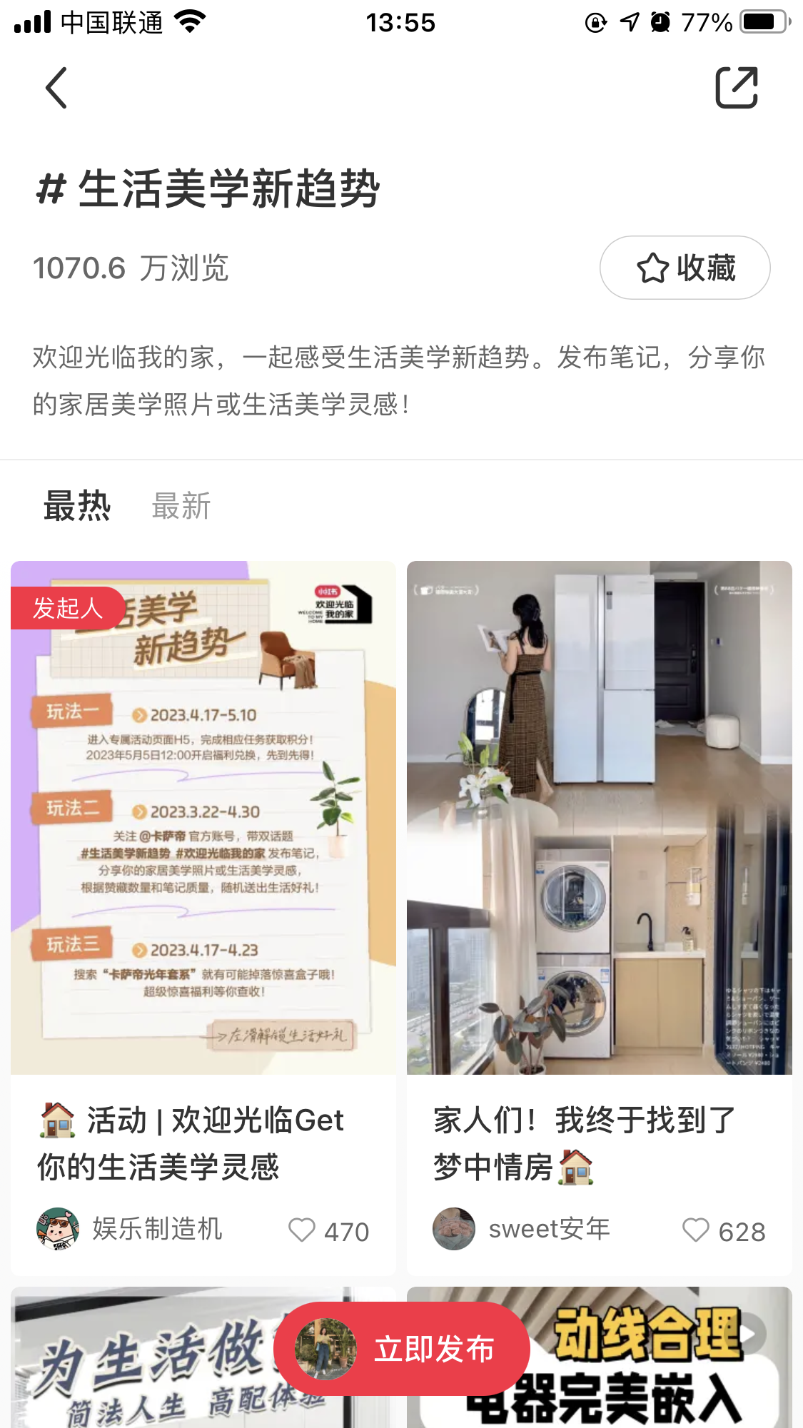 活動(dòng)由小紅書官號(hào)@娛樂(lè)制造機(jī)以#生活美學(xué)新趨勢(shì) 話題發(fā)起號(hào)召,背靠站內(nèi)濃厚的社區(qū)分享氛圍,成功搶占話題熱度。