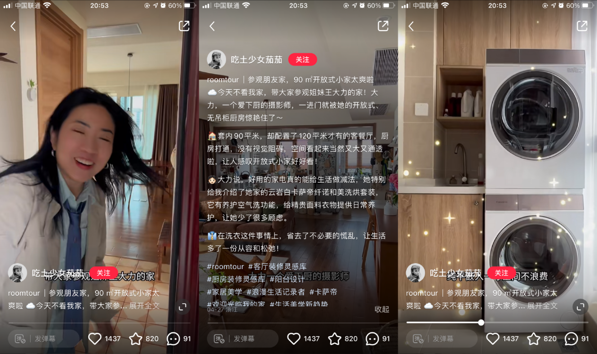 跟隨@野柿子小姐的視角,用戶可以透過(guò)觀察博主@忽忽和侯頭閑兒的家居簡(jiǎn)法,從而獲得自己的家居生活感悟。從墻體配色、家具風(fēng)格到家電排布,@忽忽和侯頭閑兒拒絕完全參照他人案例,而是從自身需求出發(fā),合理安排動(dòng)線。在他看來(lái),生活的簡(jiǎn)法是回歸自我,傾聽(tīng)真實(shí)感受,你的家只需要按照你的生活去定義??ㄋ_帝冰箱的零嵌設(shè)計(jì)、純白色的抽油煙機(jī)等產(chǎn)品,都完美滿足了他對(duì)簡(jiǎn)約視覺(jué)效果的追求。