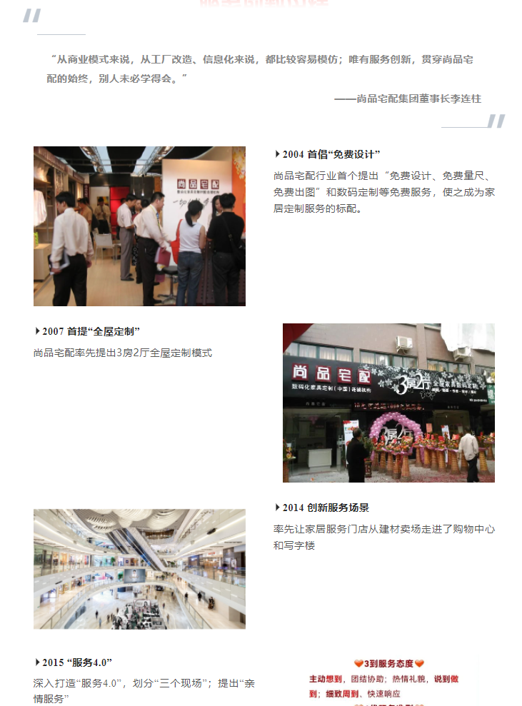 “一切從服務(wù)開始”,是2004年尚品宅配創(chuàng)始人李連柱在第一家門店開張時的店面形象墻上的題詞,這句話也凝聚了多年來尚品宅配一直傳承和堅(jiān)持的服務(wù)理念。親情服務(wù)亦是尚品宅配的核心競爭力之一。在行業(yè)競爭愈發(fā)內(nèi)卷的階段,秉持“用戶思維”,依托科技創(chuàng)新帶來的模式與服務(wù)創(chuàng)新,重視服務(wù)品質(zhì),讓尚品宅配得以始終獲得廣大用戶的認(rèn)可,并不斷超越自我引領(lǐng)行業(yè)升級。