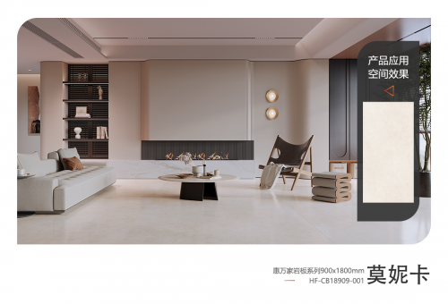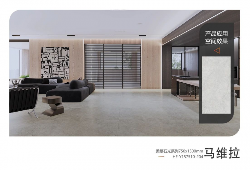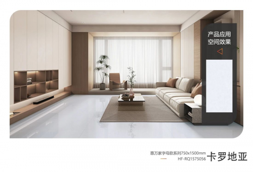 ■惠萬家?guī)r板900x1800系列采用超平釉工藝,具有亞光質(zhì)面手感細(xì)膩平順、低光感度 9-11°柔和光澤、晶體釉面防污耐磨性能優(yōu)等產(chǎn)品優(yōu)點(diǎn)。