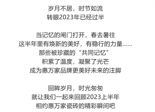 ■4月26日, 2023第九屆全國陶瓷/衛(wèi)浴經(jīng)銷商大會(huì)暨第十二屆中國陶瓷衛(wèi)浴品牌與酒店業(yè)合作峰會(huì)上,惠萬家瓷磚一舉斬獲“瓷磚品牌TOP10”榮譽(yù)。
