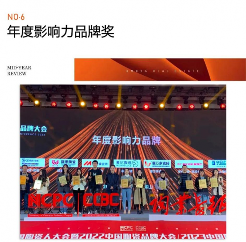 ■2月18日,在“第十二屆全國陶瓷人大會(huì)暨2022中國陶瓷品牌大會(huì)/2023中國陶瓷產(chǎn)業(yè)發(fā)展大會(huì)”上,惠萬家瓷磚則憑借過硬的品牌實(shí)力和良好的口碑,以及強(qiáng)大的綜合競爭力,榮獲“年度影響力品牌”,再次見證品牌力量。