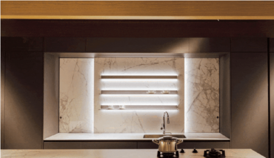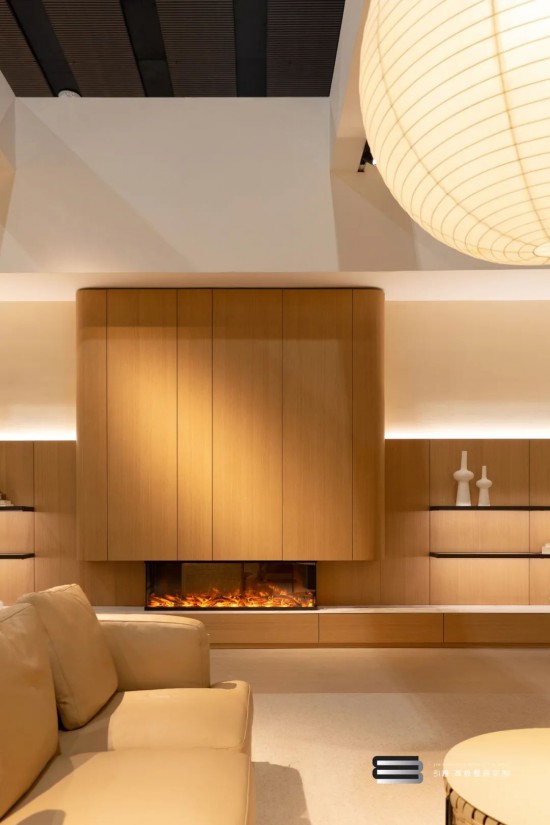 THE moon(伴月) | 系列弧形產(chǎn)品,線條柔和的吊柜,配合護墻系統(tǒng)、壁爐、進?意?利?巖板,呈現(xiàn)出?然的觸感,流暢的輪廓,暖暖爐?襯托下?業(yè)化?屬?系鋁框?晶層板,同樣和諧雅致的搭配法。