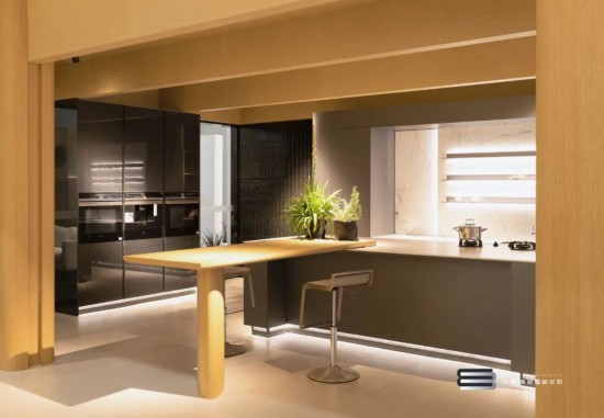 hiding(捉迷藏)| 系列櫥柜,外部碳灰pet材質(zhì)簡潔冷酷,部分套柜和島臺餐桌搭配白橡木材質(zhì),冷暖與繁簡平衡。環(huán)保PET柔膚板和天然木皮結(jié)合,自然的觸感和環(huán)保PET柔膚板適度搭配設計,簡練而不失溫度,豐富而不雜亂。