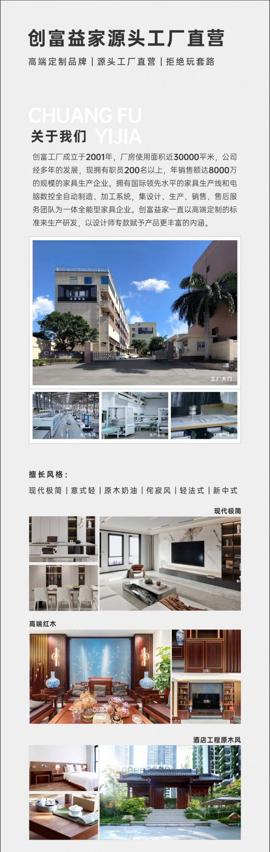 核心提示:創(chuàng)富工廠成立于2001年,擁有國際領先水平的家具生產(chǎn)線和電腦數(shù)控全自動制造、加工系統(tǒng),集設計、生產(chǎn)、銷售、售后服務團隊為一體全能型家具企業(yè)。