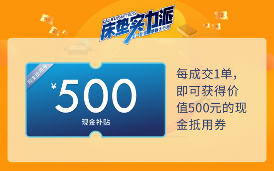活動(dòng)期間,凡您推薦其他朋友成交,每成交1單,即可獲得價(jià)值500元的現(xiàn)金抵用券。全場(chǎng)產(chǎn)品(除配套產(chǎn)品)均可使用,讓您的購物更加劃算!
