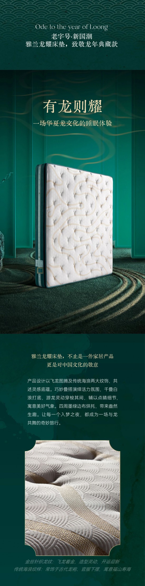 核心提示:雅蘭龍耀床墊,不止是一件家居產(chǎn)品更是對中國文化的敬意。