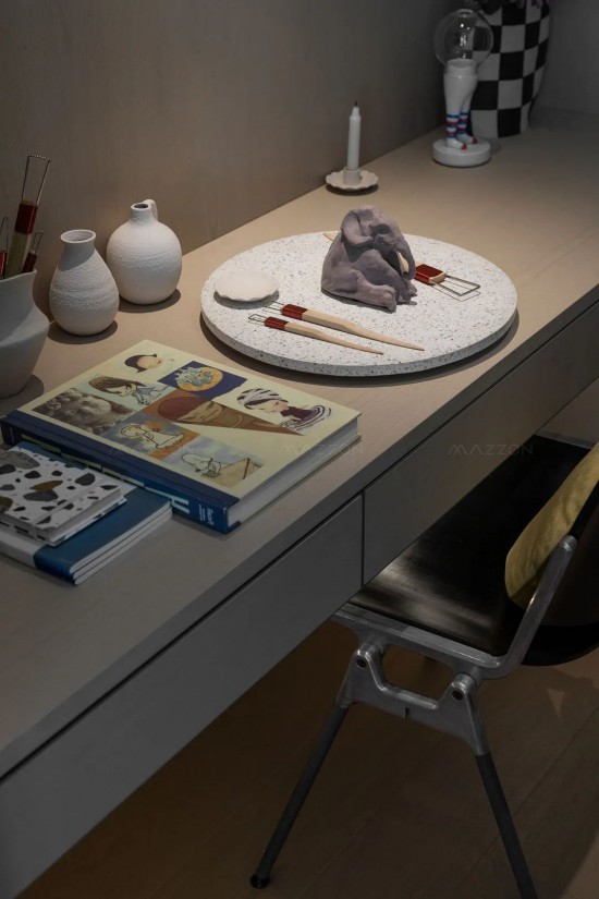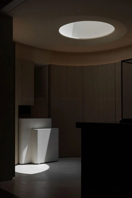 “圓形的天窗將天光引入,午后流動的陽光從上方灑下來的那一刻,我忽然想到了安藤忠雄的「光之教堂」,光影賦予了空間新的形態(tài),也賦予生活美的享受。”