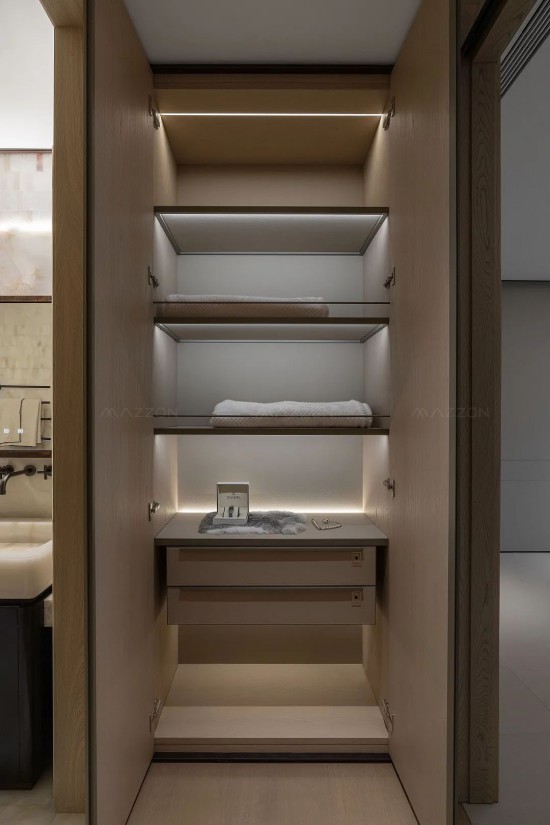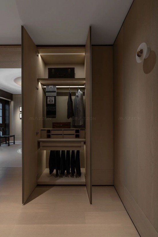 “房間的設計透露了個人的性格,是很能代表本人性格的。”Z先生與妻子對待生活上都有相似的習慣。對于衣物的擺放及拿取,都要求井井有條、高效便捷。