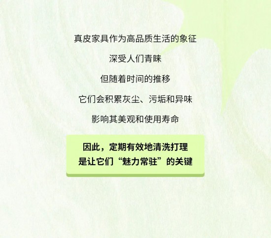 核心提示:真皮家具作為高品質(zhì)生活的象征,深受人們青睞,但隨著時(shí)間的推移,它們會積累灰塵、污垢和異味影響其美觀和使用壽命。因此,定期有效地清洗打理是讓它們“魅力常駐”的關(guān)鍵。