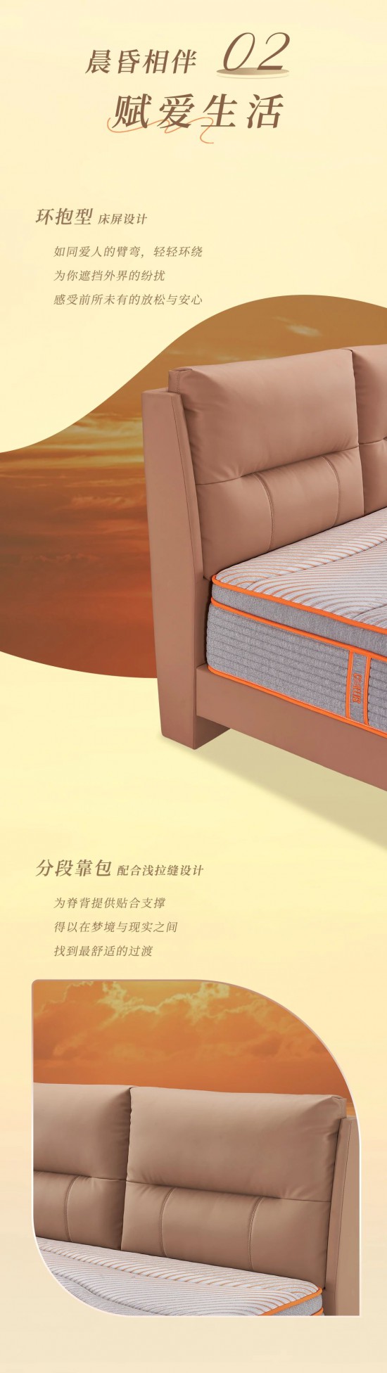 核心提示:分段靠包,配合淺拉縫設計,為脊背提供貼合支撐,得以在夢境與現(xiàn)實之間,找到最舒適的過渡。
